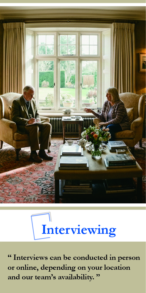 That’s where our core team—writer, designer, and project manager—steps in. We don’t just process content; we interpret it. From analyzing raw materials to defining themes, crafting compelling headlines, and anticipating reader response, we shape each story with care and intention. Our goal is not just to document a life, but to evoke it—across print, audio, and digital platforms.
